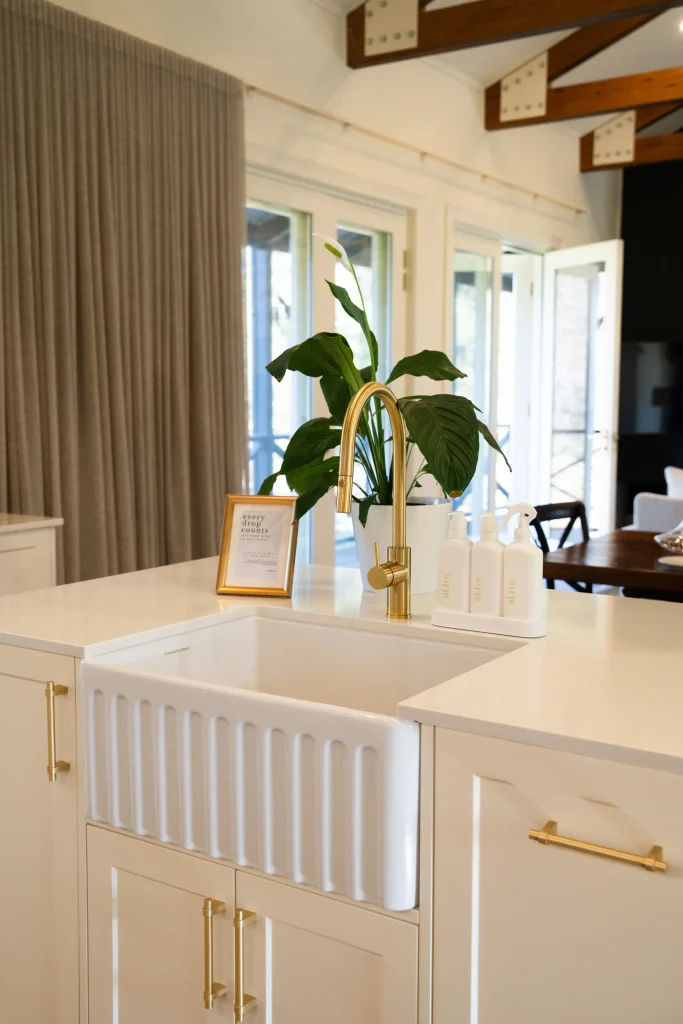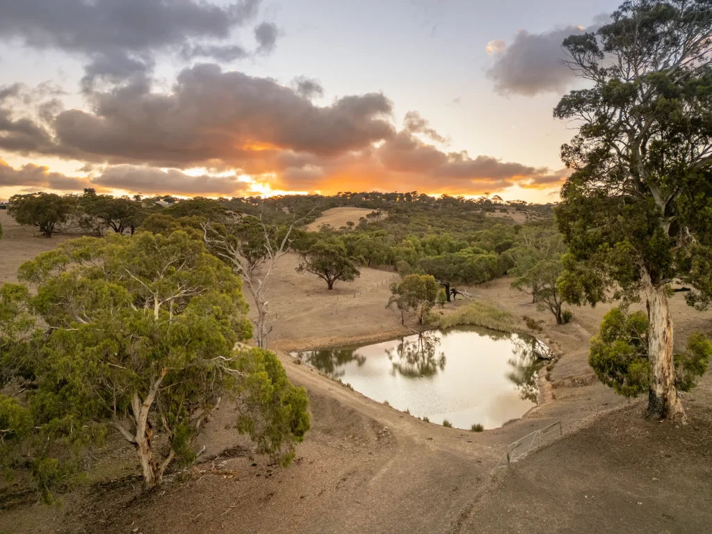 Surrounded by 500-year-old gum trees and set within its own orchard, the cottage overlooks a spring fed dam and offers breathtaking, unobstructed views of Currency Creek’s rolling hills from every window.
